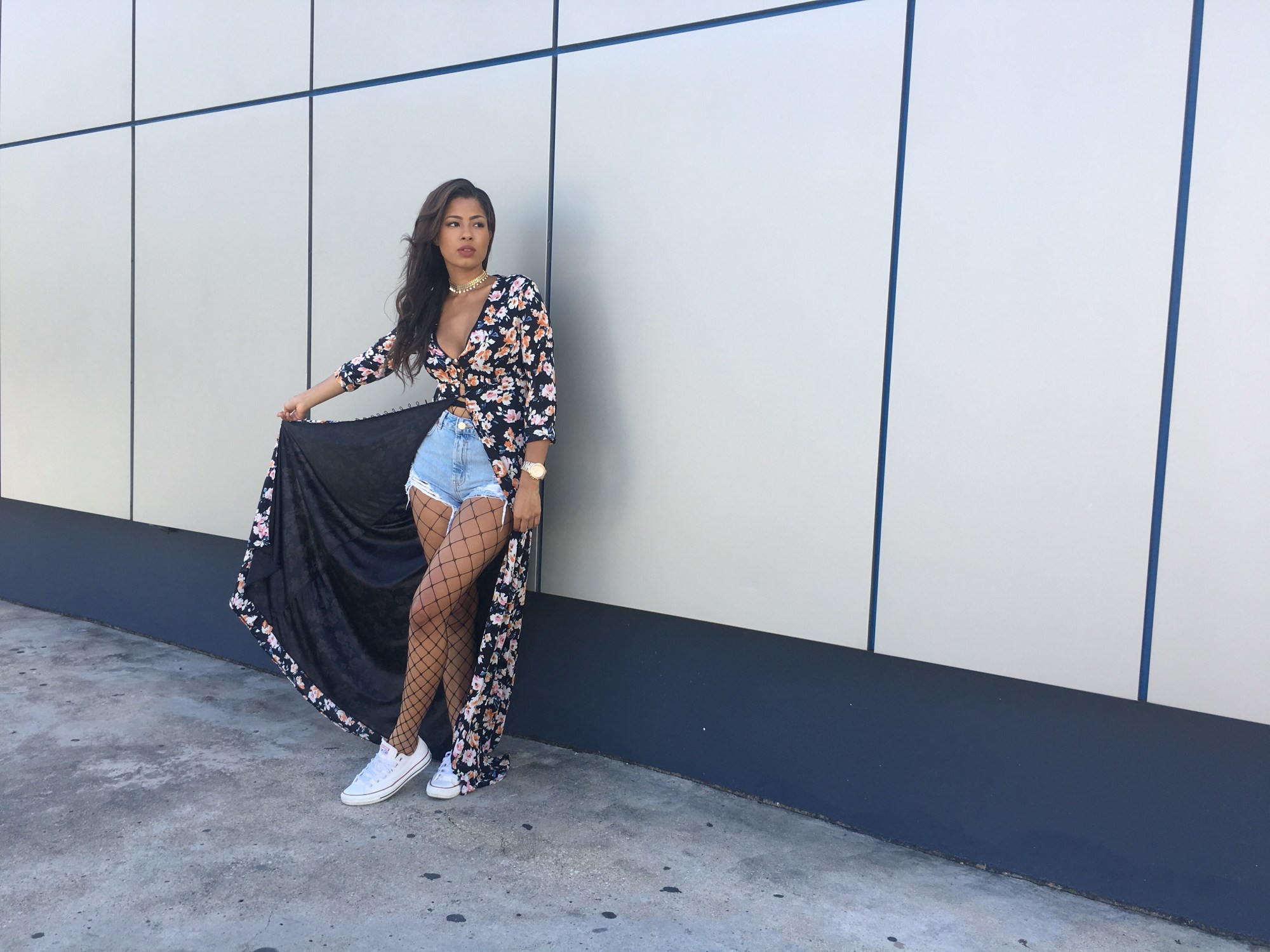 Florals and fishnets, two popular trends happening right now. Florals are perhaps the most apparent motifs in fashion. Inherently beautiful and available in many different textures and styles. It’s really the universal symbol of femininity. In contrast to the harshness of the net which for most may be too risqué. I love the combination of the two as it lends the right mix of edgy and soft. Sometimes it’s good to mix things up a bit